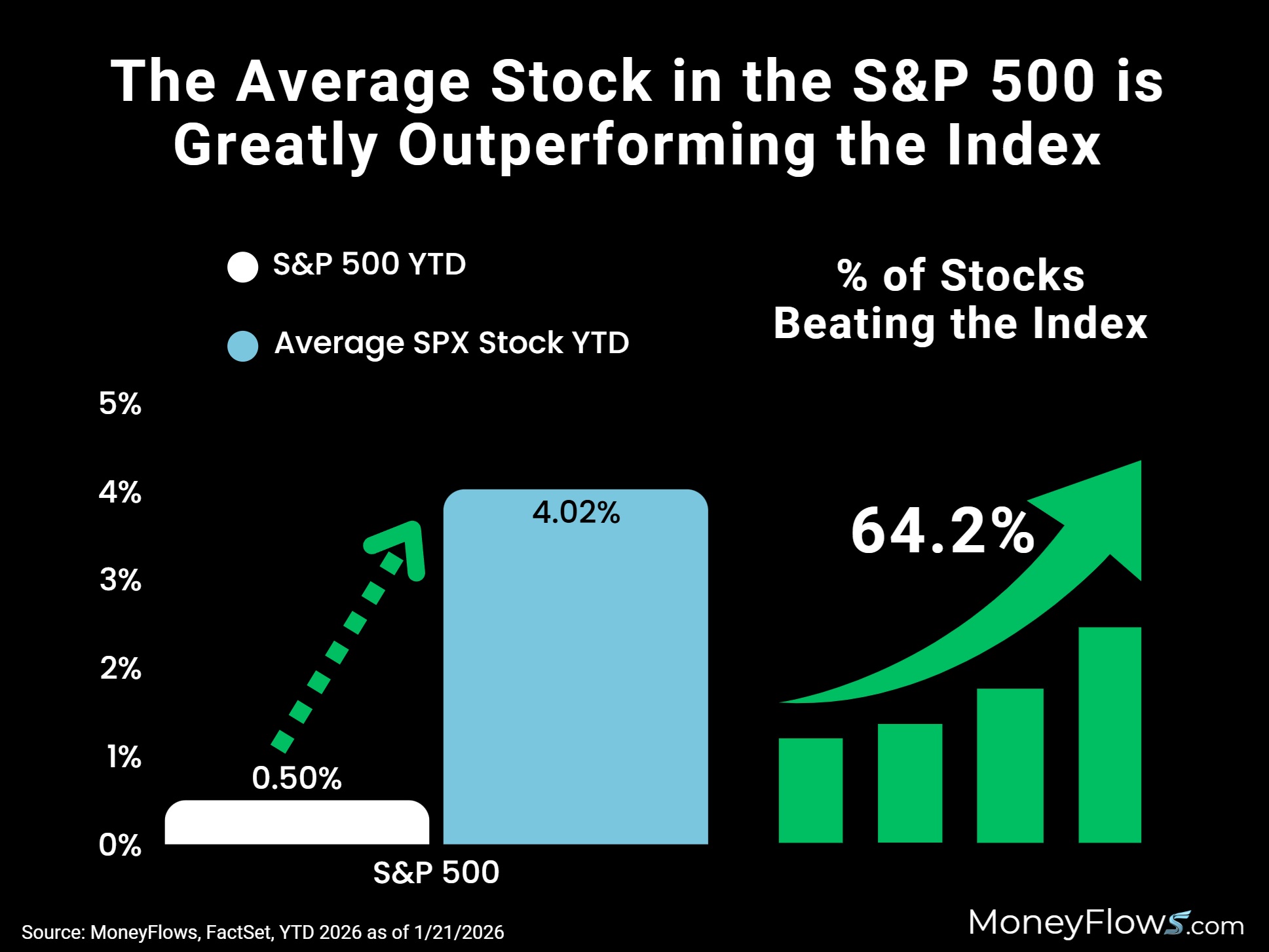 The average stock in the S&P 500 has gained a whopping 4.02% vs the .5% gain for the cap-weighted index.