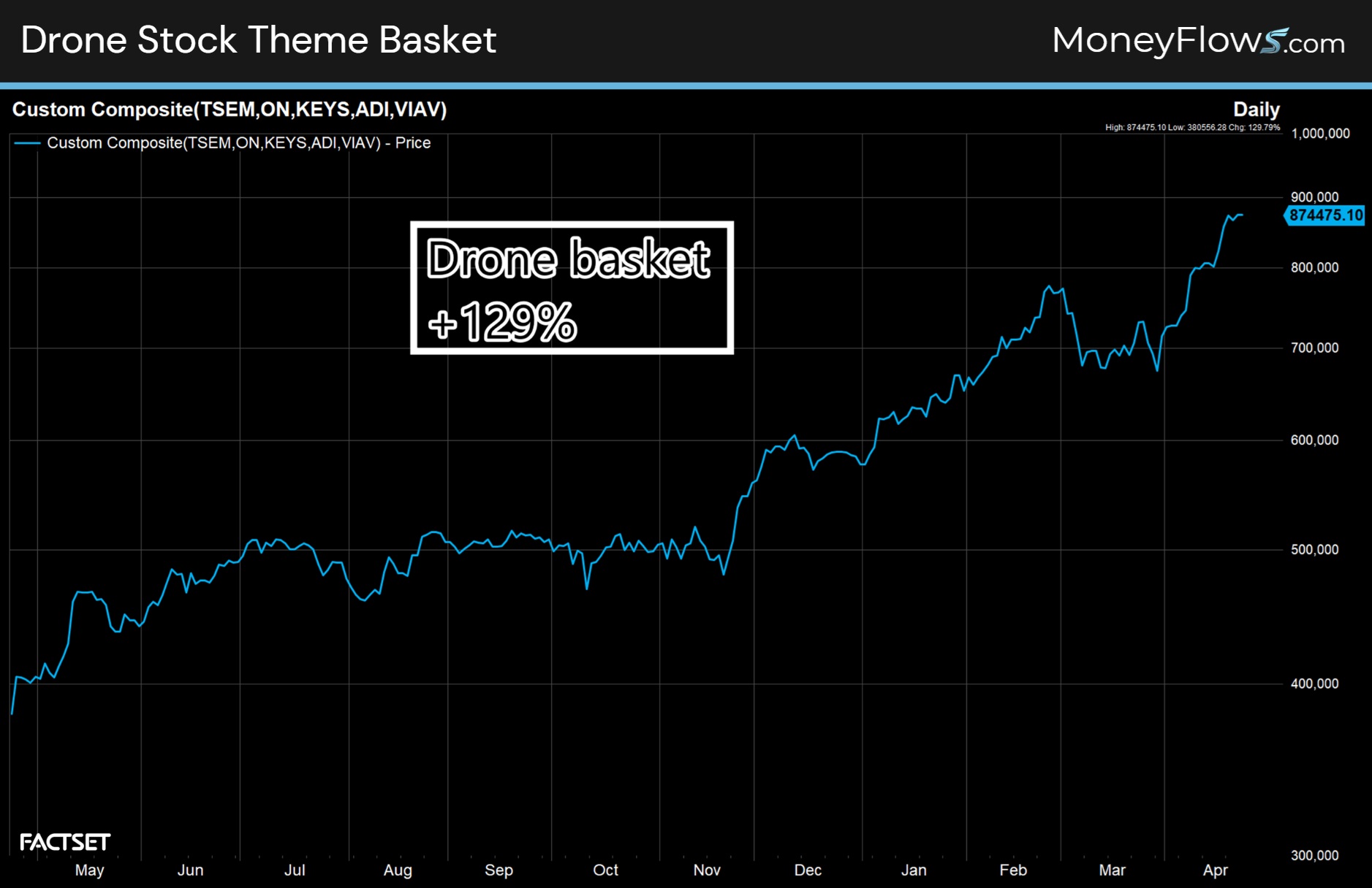 Lastly, I’ve created a drone basket called TOKAV including Tower Semi. (TSEM), On Semi (ON), Keysight (KEYS), Analog Devices (ADI), and Viavi Solutions (VIAV) to showcase this powerful drone theme. (disclosure I hold a long position in ADI in a managed account)