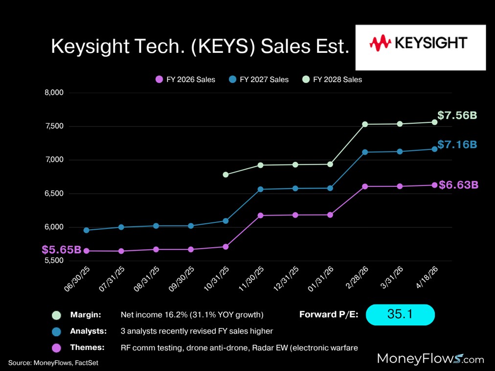 Part of the reason is due to Keysight being levered to offensive drone and counter-drone defenses, RF communications testing, and Radar EW (electronic warfare).
