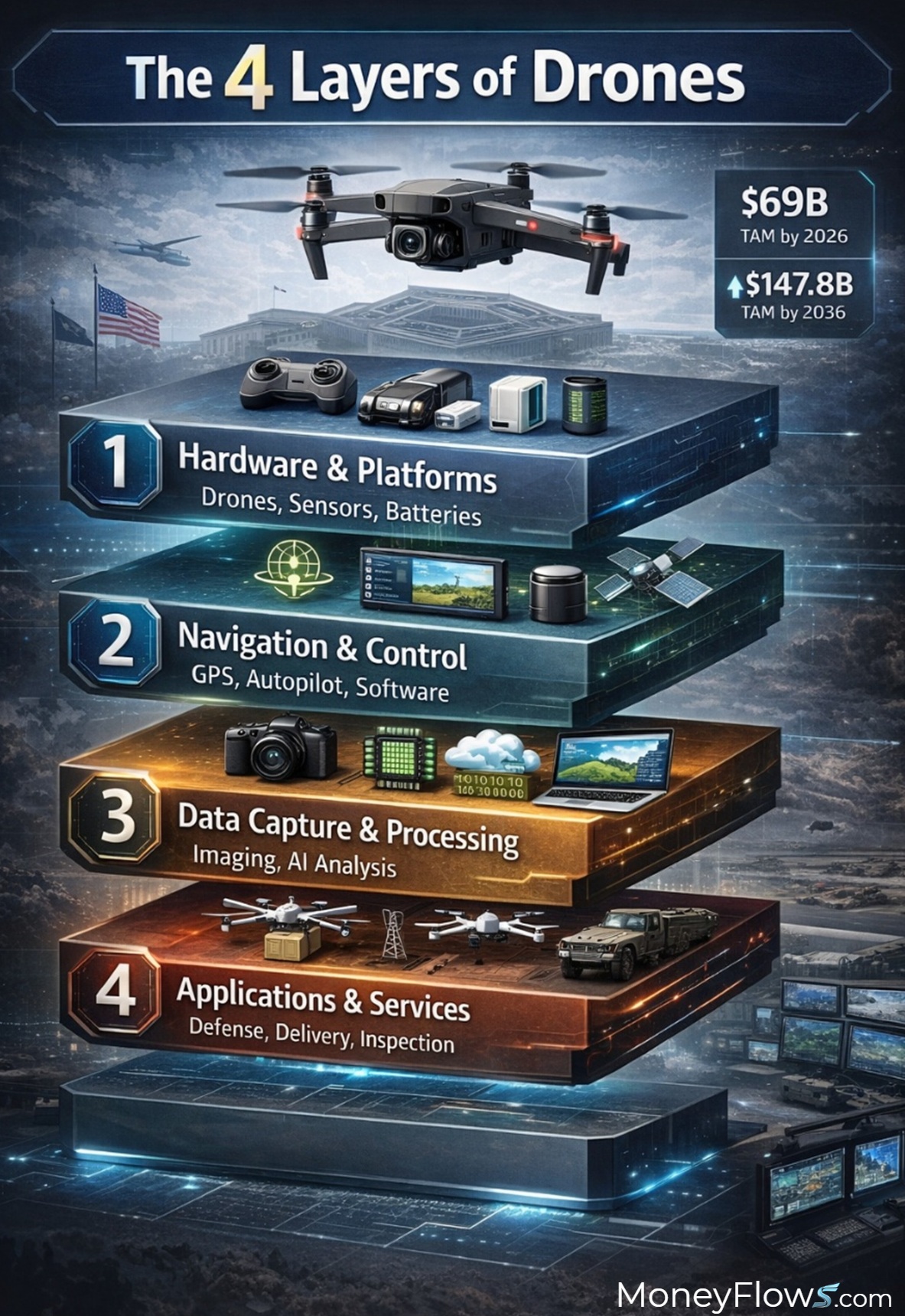 The 4 layers of drones can be thought of as: