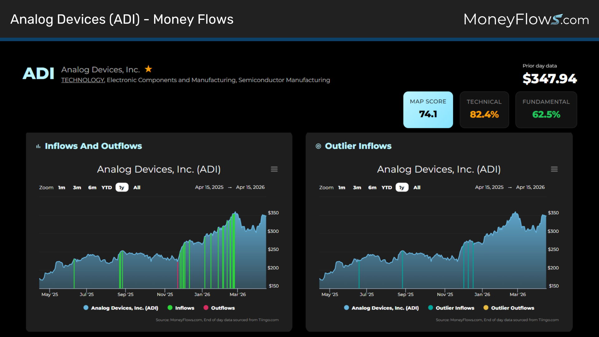 Those are the instances when ADI made our elite Outlier 20 report. This indicated how ADI was one of the best buy ideas in our research (disclosure I hold a long position in ADI in a managed account).