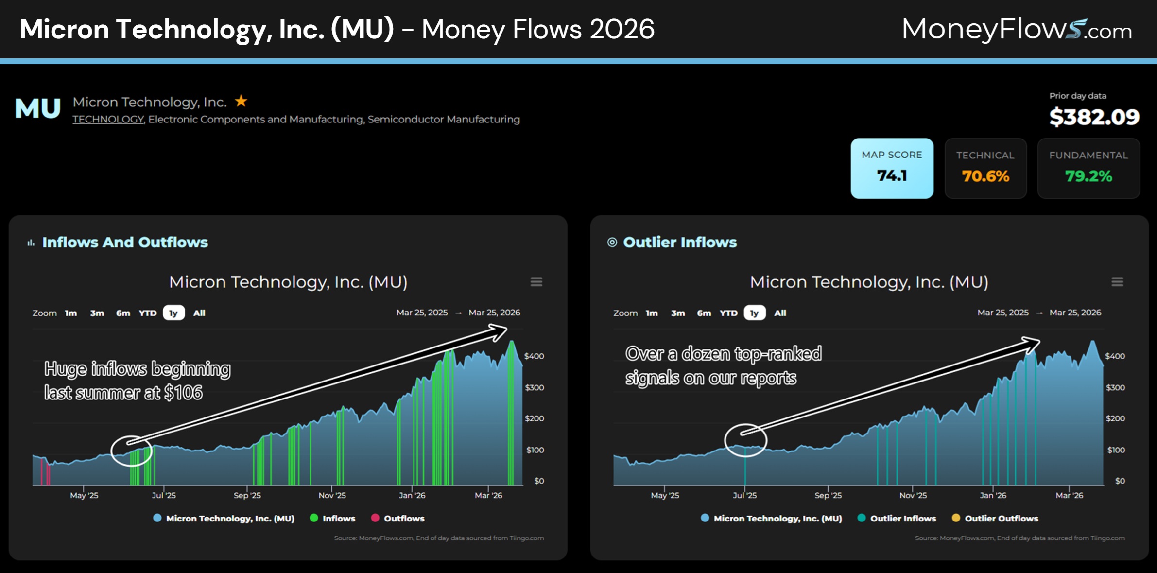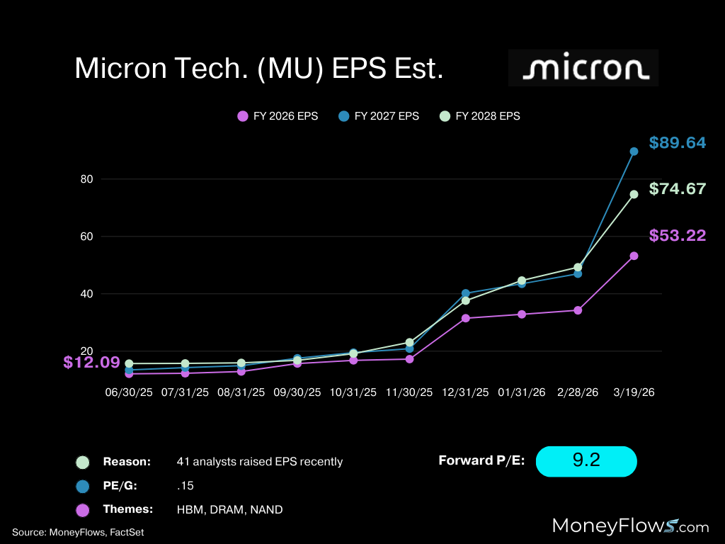 We’ve been on record many times discussing MU as the trade of the year. That’s due to relentless institutional demand for its shares.
