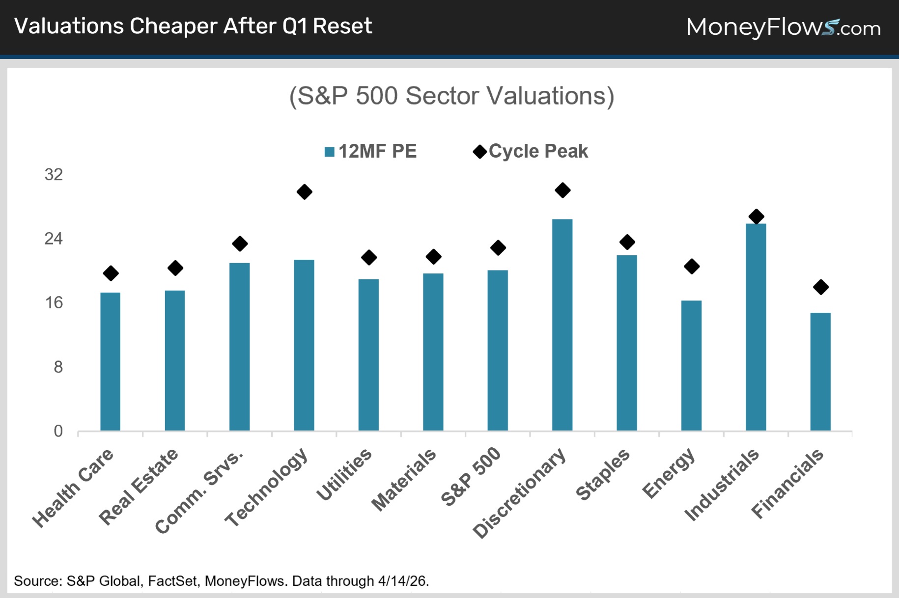 And since earnings revisions have remained strong, the equity drawdown has fueled a notable valuation reset.
