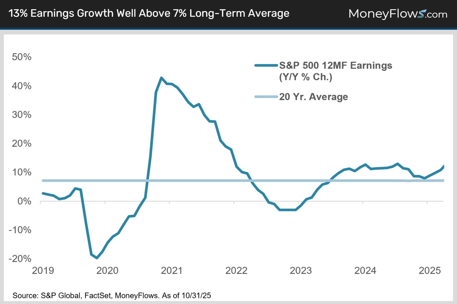 13% Earnings Growth Well Above 7% Long-Term Average | MoneyFlows.com
