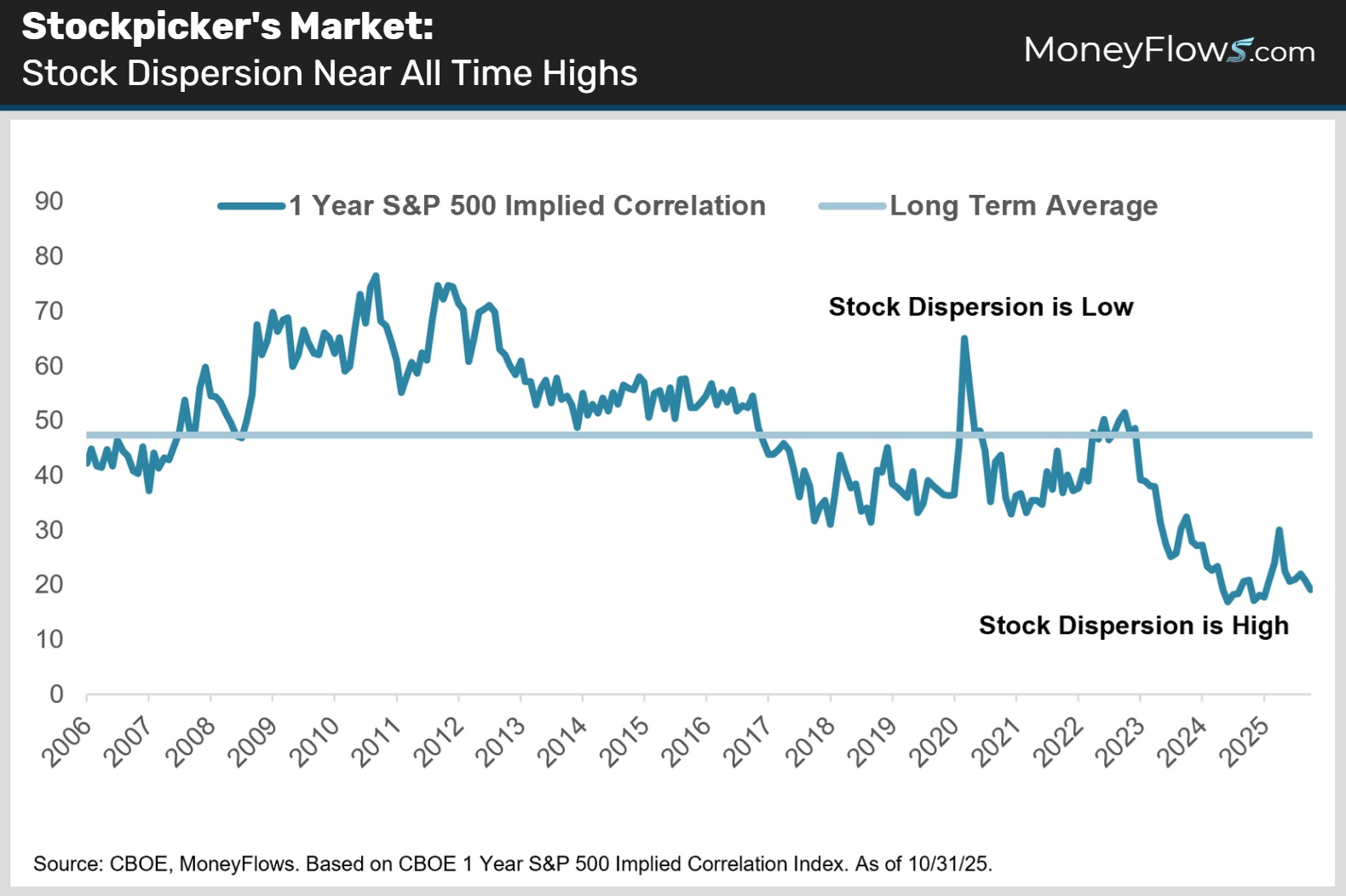 Stock Dispersion Near All Time Highs | MoneyFlows.com