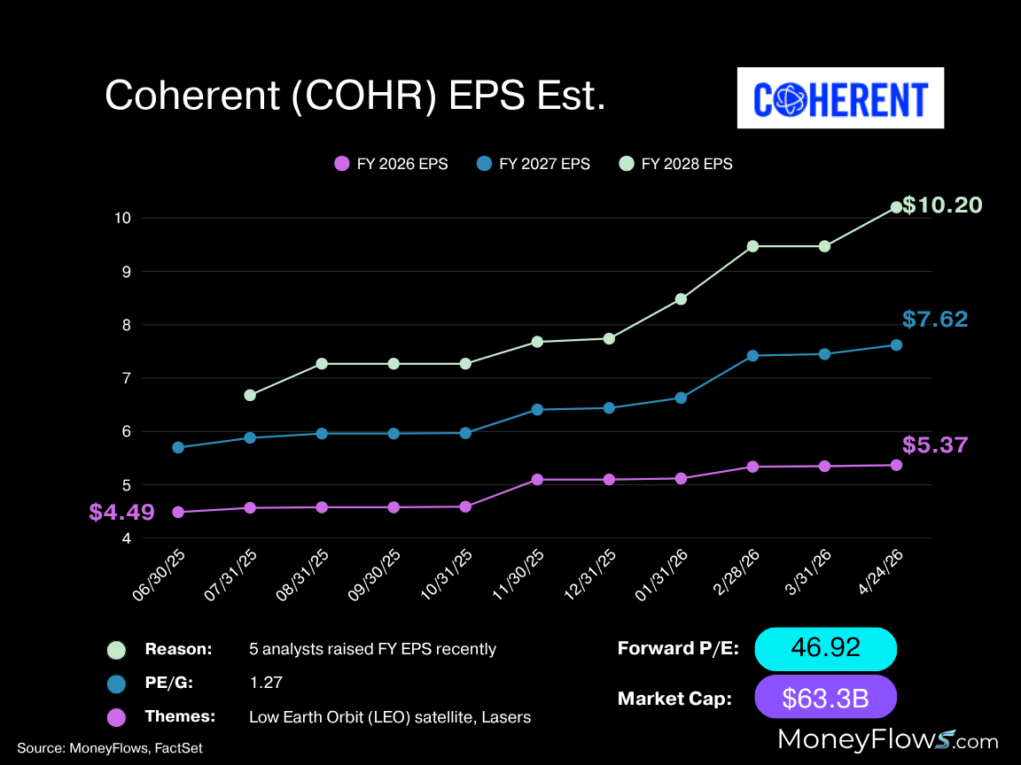 Below highlights our flow signals on both LITE and COHR with forward EPS estimates on the right.