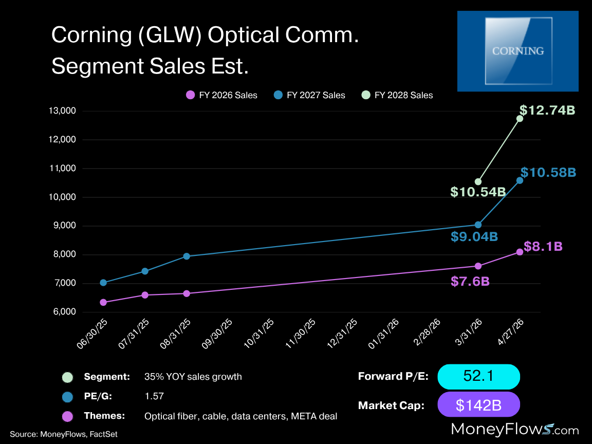 GLW has attracted a lot of attention lately. Their Optical Communications segment continues to drive the growth narrative with recent hikes to revenue estimates: